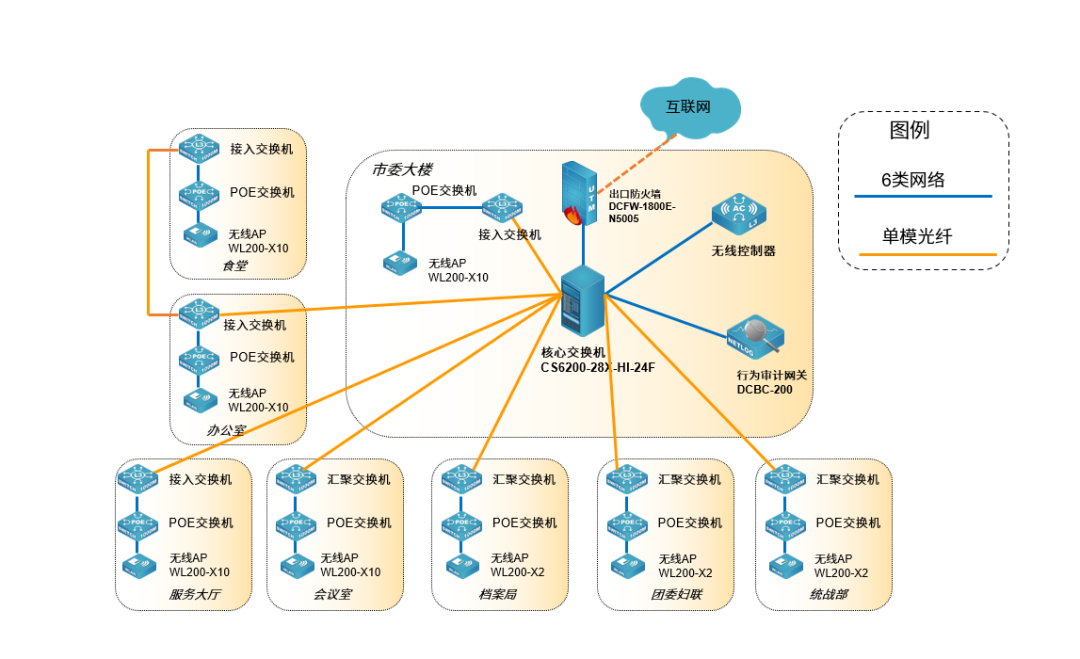 靖西市政府无线网络安全覆盖涵盖市委大楼、统战部、团委妇联、档案局、服务大厅等重要单位部门,越来越多的工作流程都在网络中进行。本次方案中,采用了公海gh555000aa 4频14流的旗舰型WiFi6无线AP WL8200-X10在人员密集和数据量较大的场所进行覆盖,为靖西市政府庞大的办公系统、财务系统、审批系统等给予了稳定、高速的网络环境。